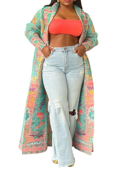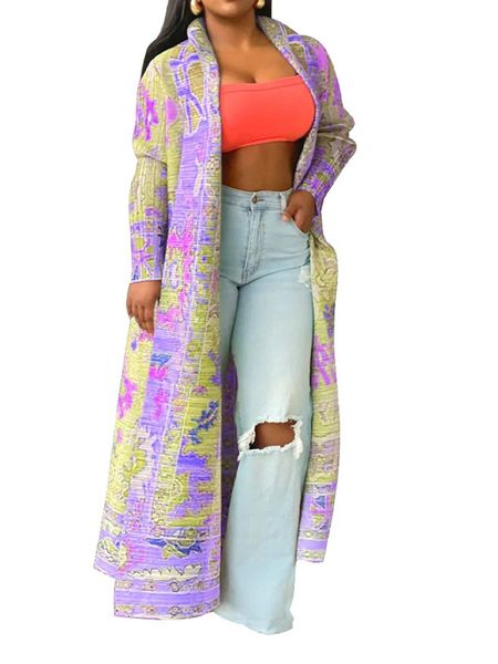 Printed Trench Coat Long Jacket